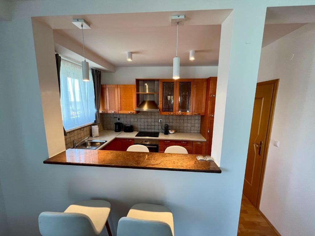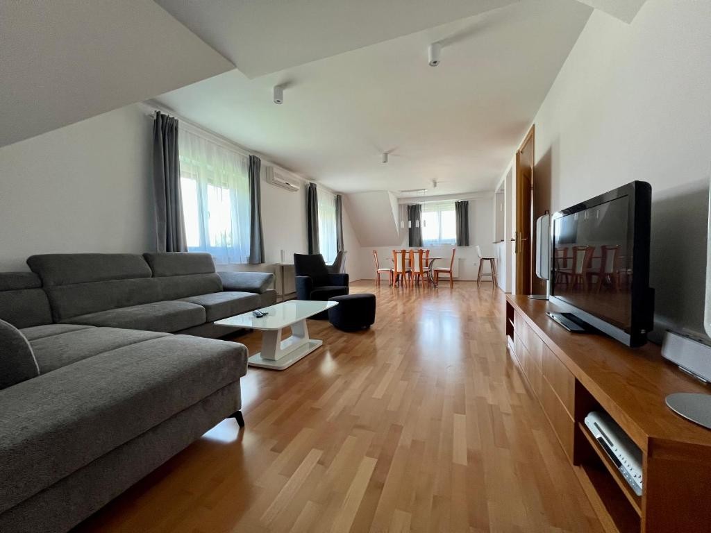 The modern and premium-equipped apartment, measuring 130 m², has two bedrooms with three beds, a spacious living room, and a fully equipped kitchen with a stovetop, refrigerator, dishwasher, and all the necessary kitchenware. You can enjoy the terrace and the fenced yard. The rooms are air-conditioned. The accommodation can host up to 5 people.
