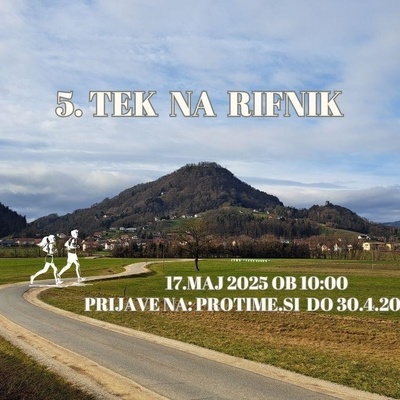 Peti tek na Rifnik bo organiziran 17.5.2025 in bo potekal v Športnem parku Rifnik v Novi vasi – Šentjur.