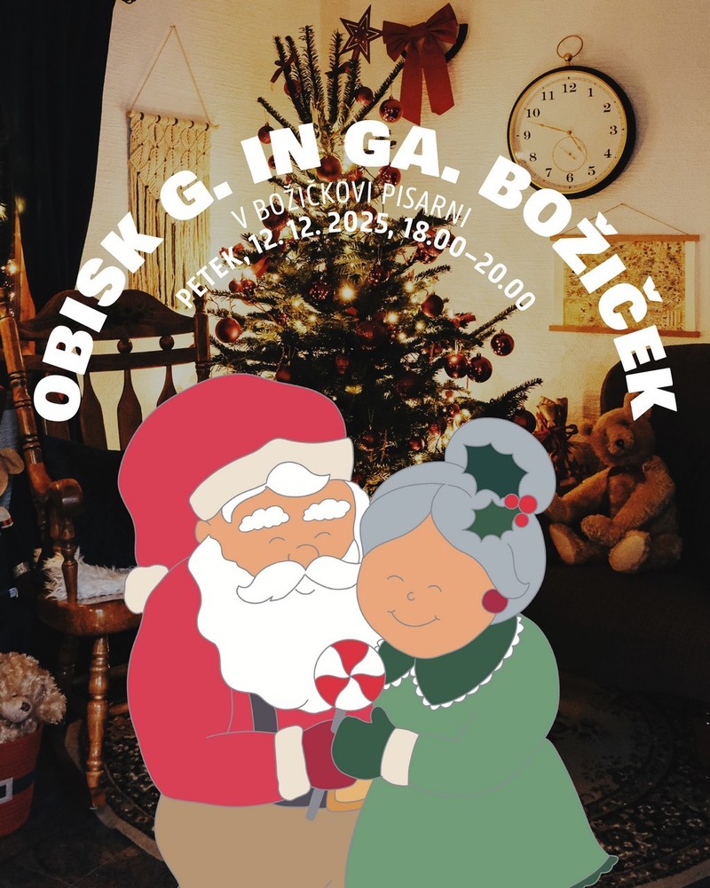 V petek, 12. decembra 2025, bosta ob 18.00 v pisarni gospod in gospa Božiček. Božičkova bosta toplo pozdravila in z veseljem prisluhnila vsem otrokom.