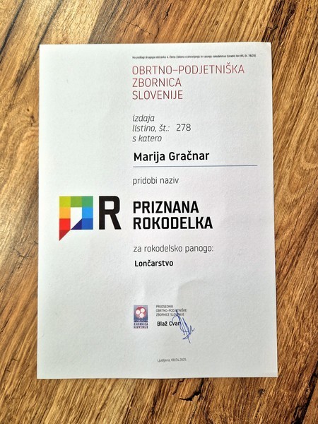 Marija Gračnar, lončarka, umetnica in lastnica Ateljeja Mlin umetnin, je prejela častni naziv priznana rokodelka, ki ga podeljuje Obrtno-podjetniška zbornica Slovenije. S tem je bilo njeno dolgoletno, predano delo na področju lončarstva tudi uradno potrjeno in nagrajeno.