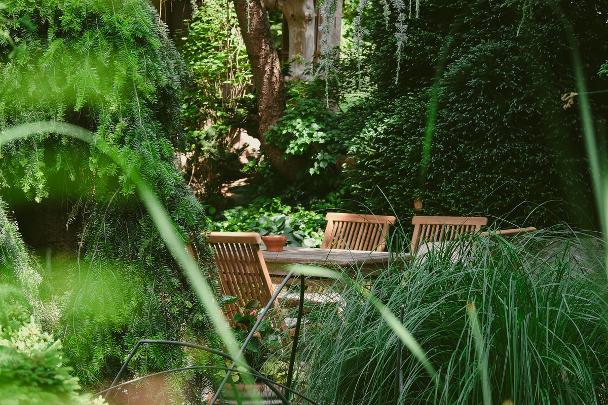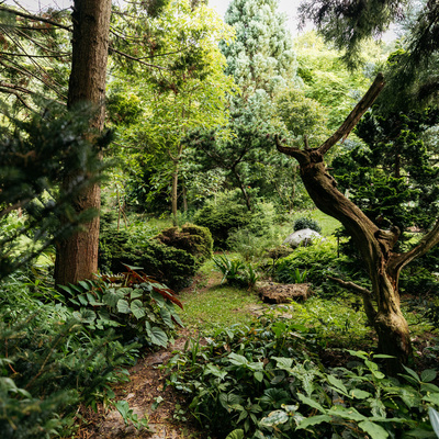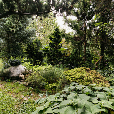 Zaradi iglavcev, grmovnic in drugih trajnic je vrt zanimiv v vseh letnih časih.
