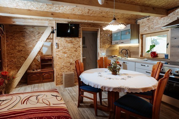 Mirko Pajek: Ne, vse je zraslo v naših glavah in rokah izkušenih delavcev, ki še znajo obdelovati stare lesene konstrukcije. Obnova je trajala dobro leto, konec leta 2022 pa sva apartma že oddala prvim gostom.