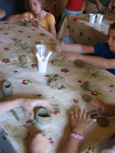 Spoznavanje in igre, uvod v delavnice (spoznavanje dela z glino in tehnik dela z glino), ustvarjalna delavnica s pinching tehniko