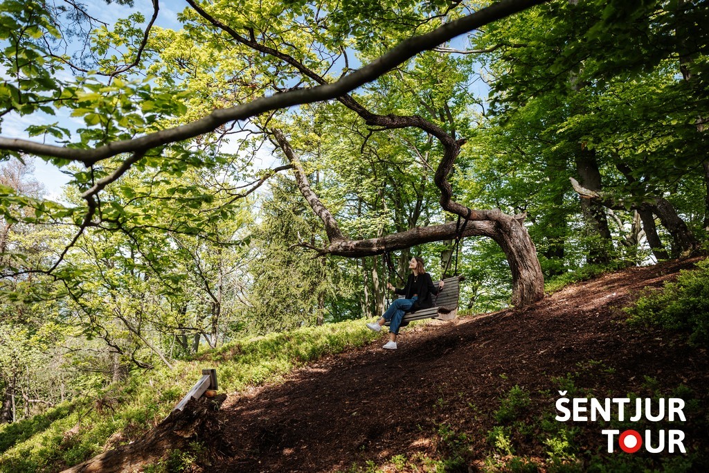 Resevna, a 682-meter hill southwest of Šentjur, is a popular hiking spot featuring a lookout tower, a mountain lodge, and a swing. The hill got its name from the blue-flowering heath (resje in Slovene). Its forests are rich in wild fruits such as blueberries, mushrooms, and chestnuts. In the clearing below the summit stands a memorial commemorating events from World War II.