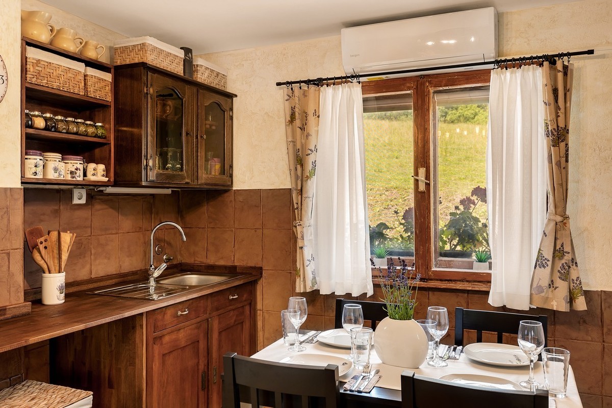 The apartment is furnished in an authentic vintage style with a warm country touch. Antique furniture and natural materials create a cozy, homely atmosphere that transports you back to a time of peace, simplicity, and harmony with nature. By prior arrangement, we also offer organized taxi trips across Slovenia and abroad.