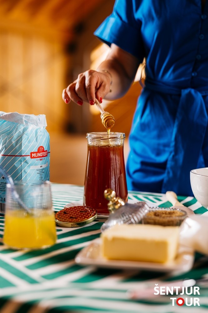 Doživetje se začne v učnem čebelnjaku Čebelarskega društva Šentjur, le korak od Ipavčeve hiše. Čebelarji vas bodo sprejeli z dobrodošlico – kozarčkom domače medice. Ob kratki predstavitvi boste izvedeli, kako pomembne so čebele za ohranjanje biotske raznovrstnosti in zakaj se Občina Šentjur ponaša z nazivom Čebelam prijazna občina. Spoznali boste tudi postopek pridobivanja medu ter bogato tradicijo slovenskega čebelarstva, ki jo krasijo poslikane panjske končnice in značilni čebelnjaki – prepoznavni del naše kulturne krajine.